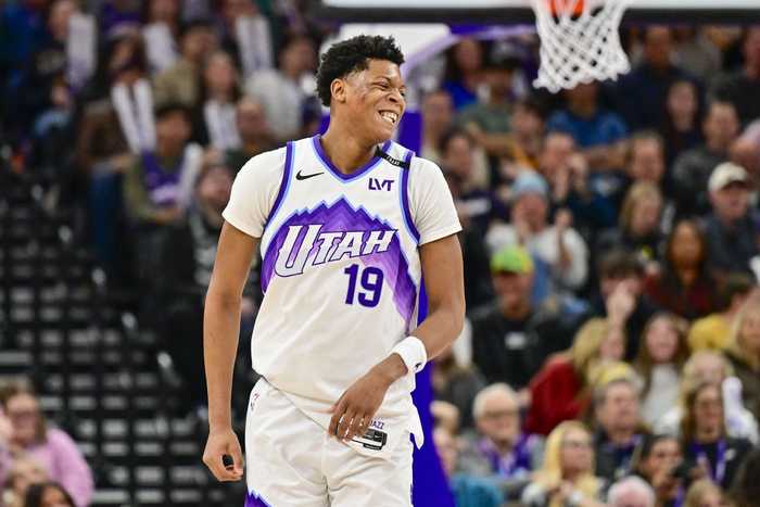 上半场,爵士5号秀贝利表现不错,半场结束的压哨三分球帮助球队完成反超,在14分钟的时间里,投篮8中5,三分球5中3,拿到13分1盖帽的数据。